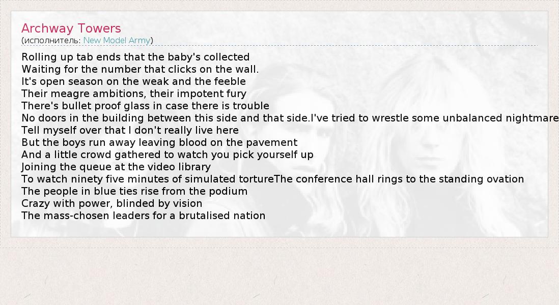 А как ты думаешь, о чем песня "Archway Towers" ?