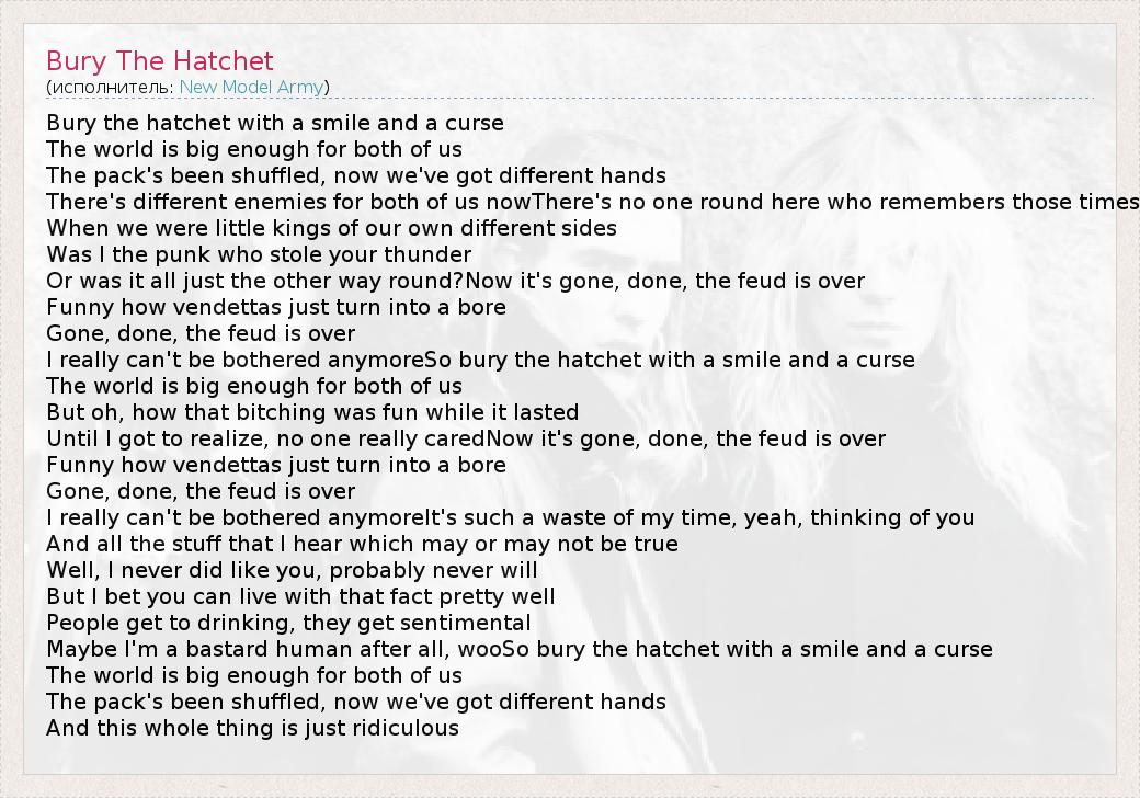 А как ты думаешь, о чем песня "Bury The Hatchet" ?