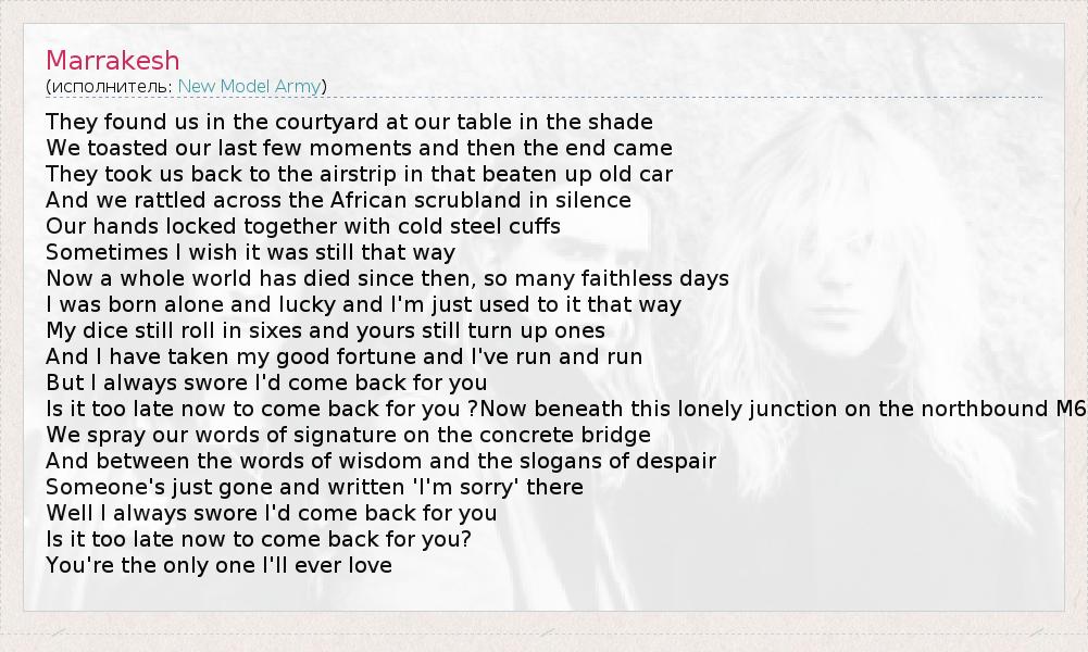 А как ты думаешь, о чем песня "Marrakesh" ?