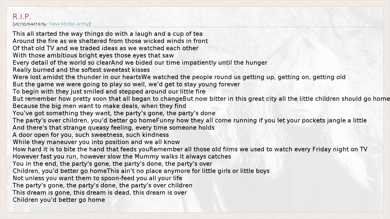 Это интересно:1980—1989New Model Army (заимствовавшие название у военной организации под предводительством Оливера Кромвеля) образовались в Брэдфорде, графство Йоркшир, в 1980 году под предводительством поющего гитариста Слэйда-Уравнителя (Slade The Leveller, он же Джастин Салливан, родился 8 апреля 1956 года в Букингемшире, Англия). Соавтором идеи можно считать его подругу, писательницу и поэтессу Джулз Денби (Joolz... продолжение