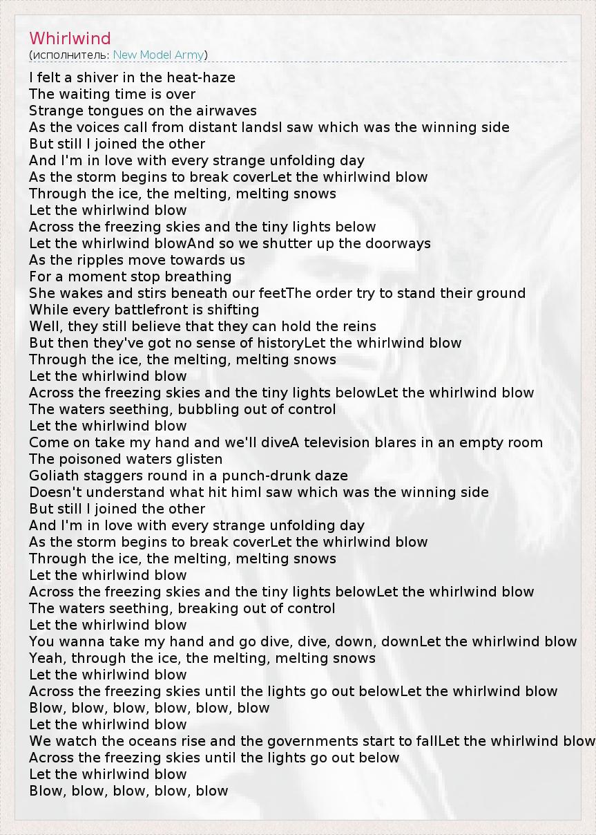 А как ты думаешь, о чем песня "Whirlwind" ?