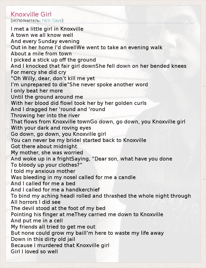 А как ты думаешь, о чем песня "Knoxville Girl" ?