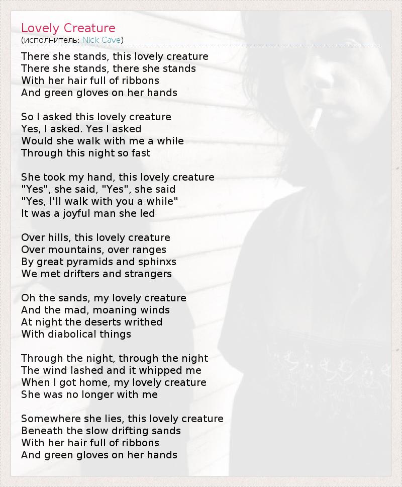 А как ты думаешь, о чем песня "Lovely Creature" ?