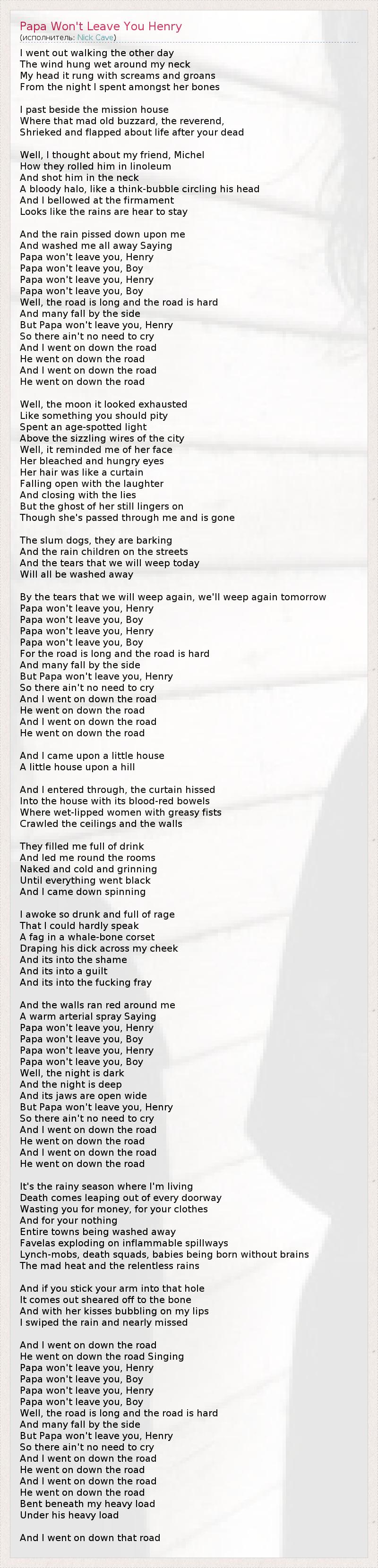 ГлавнаяИсполнителиNick CavePapa Won't Leave You Henry