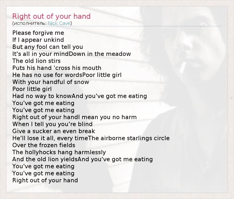 ГлавнаяИсполнителиNick CaveRight out of your hand