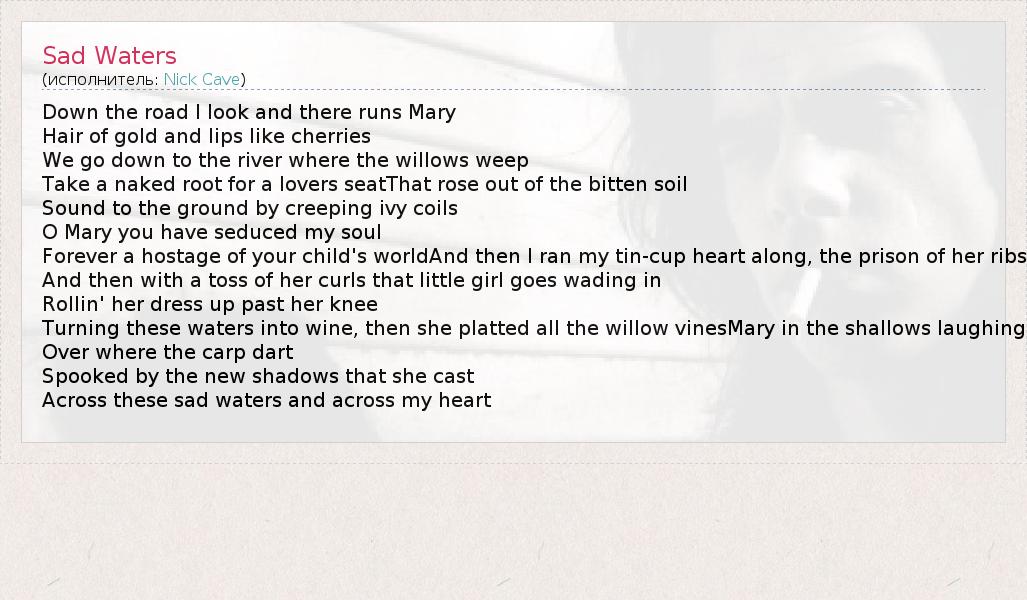 А как ты думаешь, о чем песня "Sad Waters" ?
