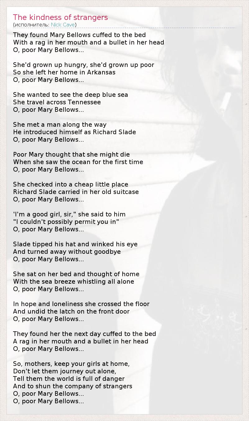 А как ты думаешь, о чем песня "The kindness of strangers" ?