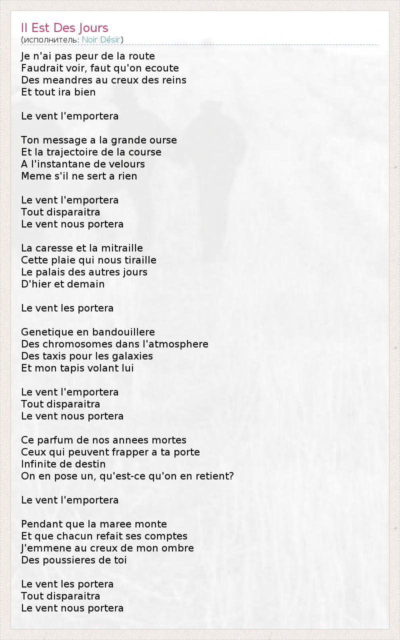 А как ты думаешь, о чем песня "Il Est Des Jours" ?