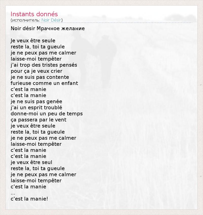 А как ты думаешь, о чем песня "Instants donnés" ?