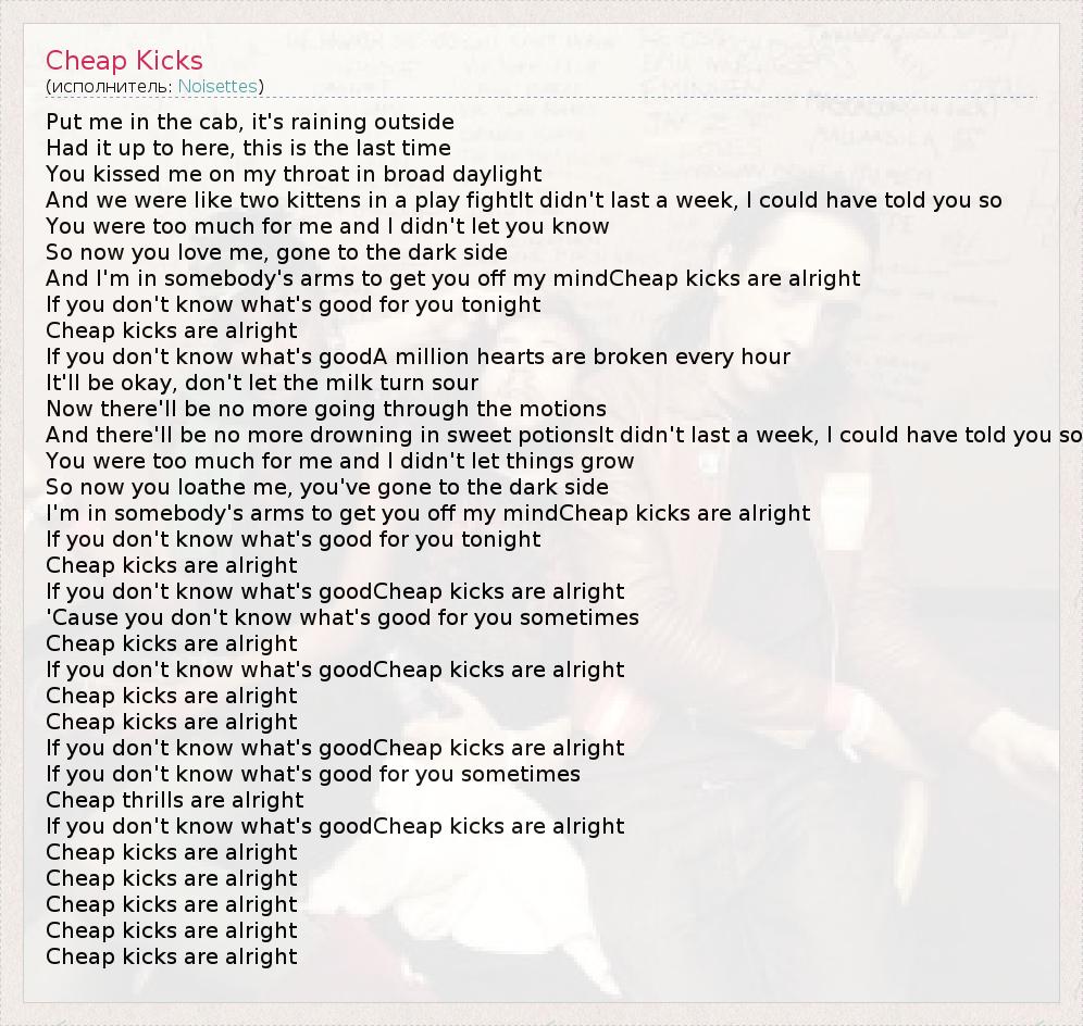 А как ты думаешь, о чем песня "Cheap Kicks" ?