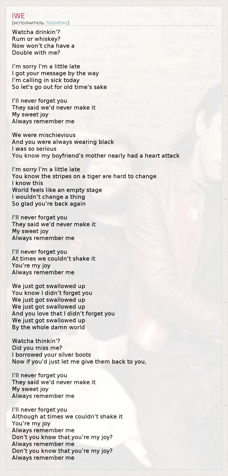 I'll never forget you