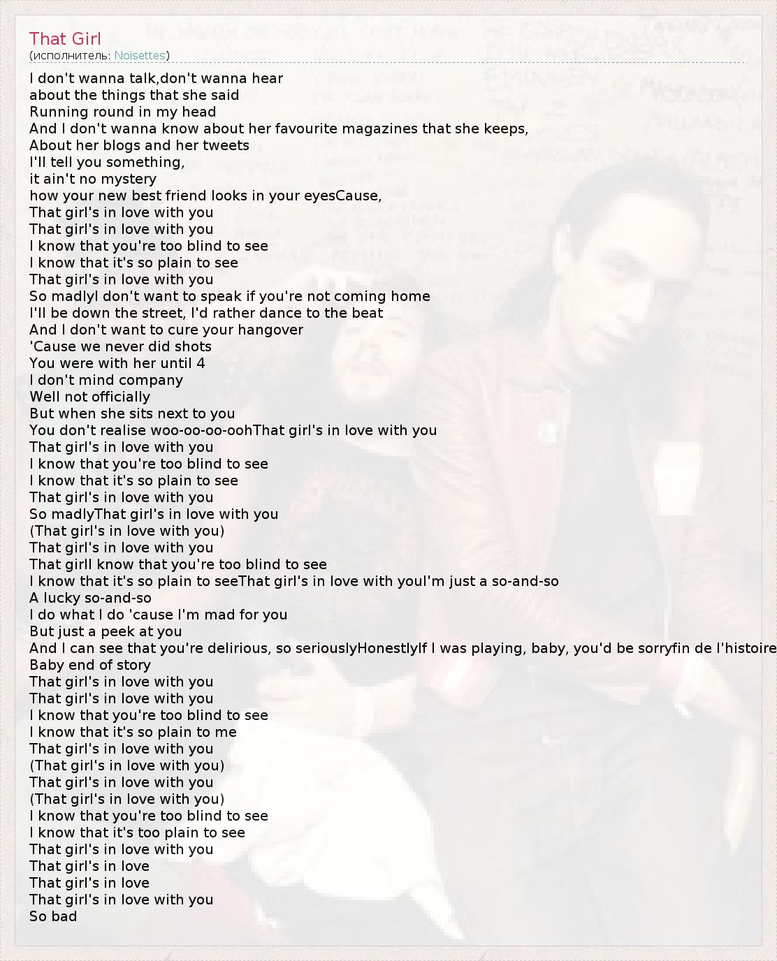 You don't realise woo-oo-oo-oohThat girl's in love with you