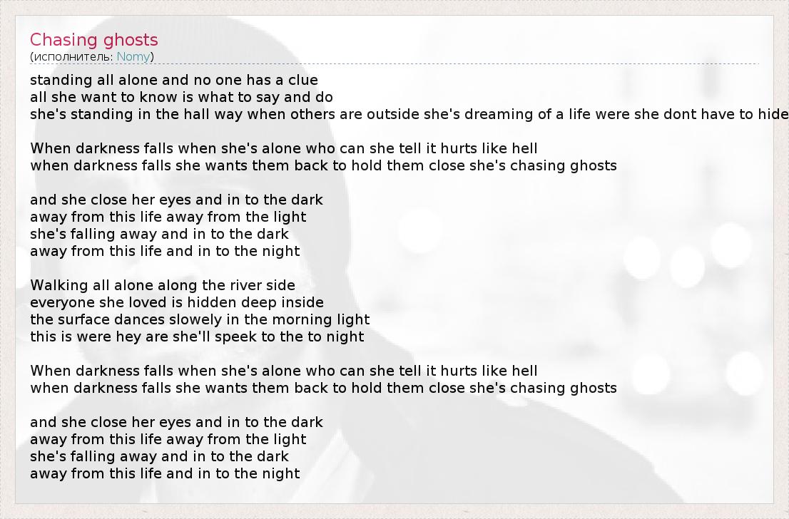 А как ты думаешь, о чем песня "Chasing ghosts" ?