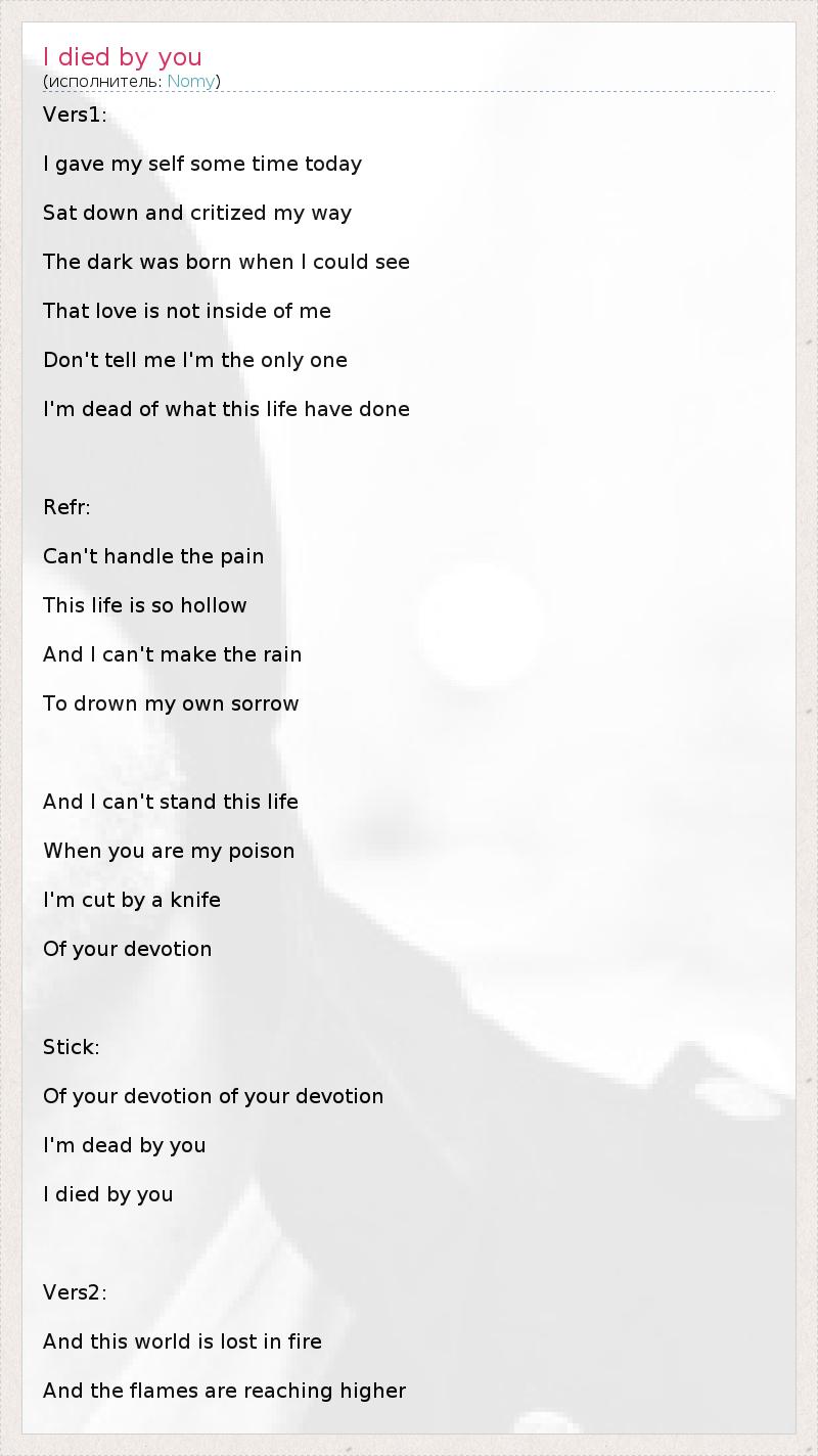 А как ты думаешь, о чем песня "I died by you" ?