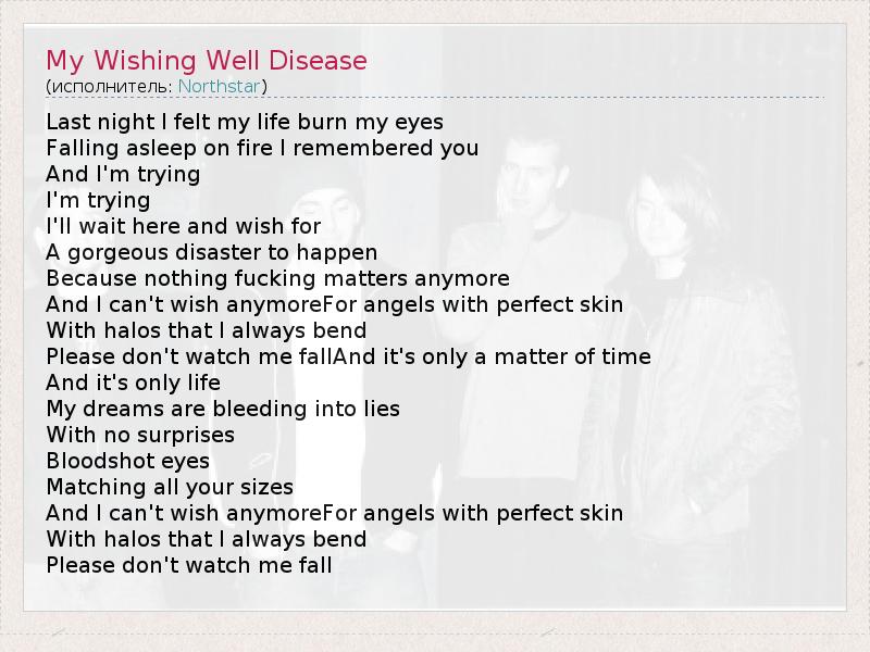 А как ты думаешь, о чем песня "My Wishing Well Disease" ?