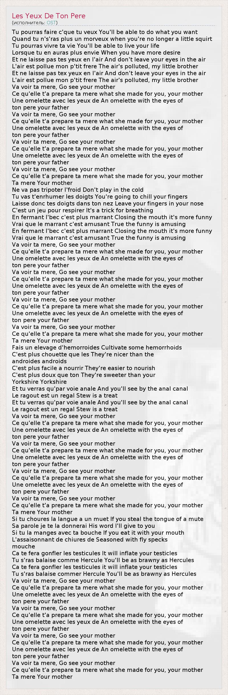 А как ты думаешь, о чем песня "Les Yeux De Ton Pere" ?