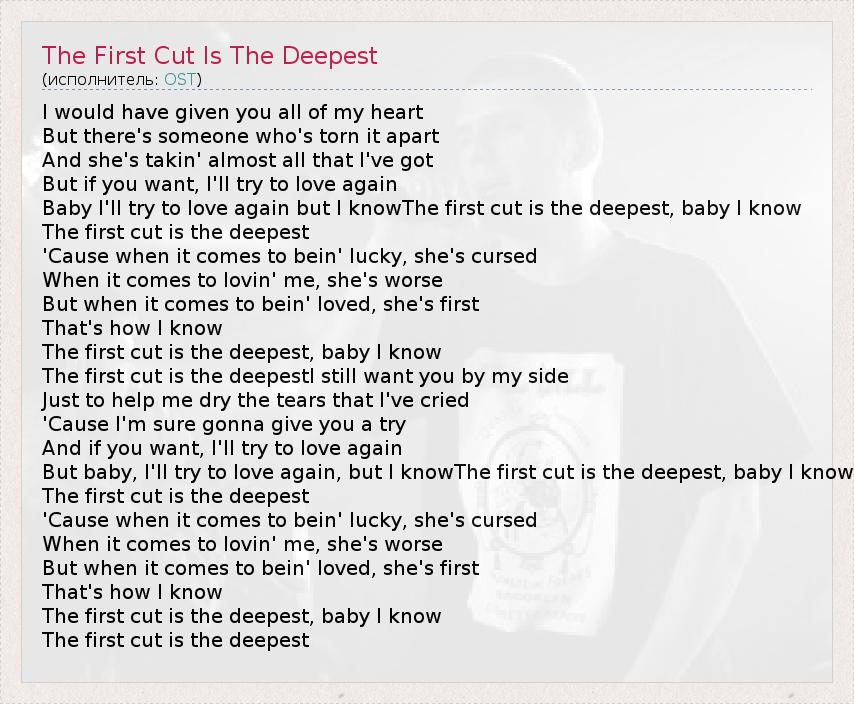 А как ты думаешь, о чем песня "The First Cut Is The Deepest" ?