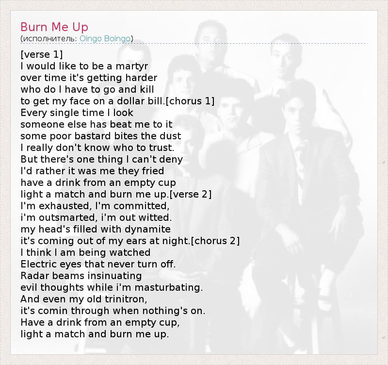 А как ты думаешь, о чем песня "Burn Me Up" ?