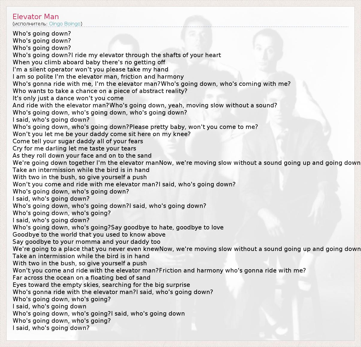 А как ты думаешь, о чем песня "Elevator Man" ?
