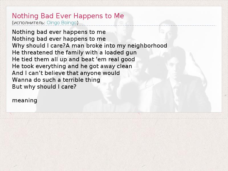 А как ты думаешь, о чем песня "Nothing Bad Ever Happens to Me" ?