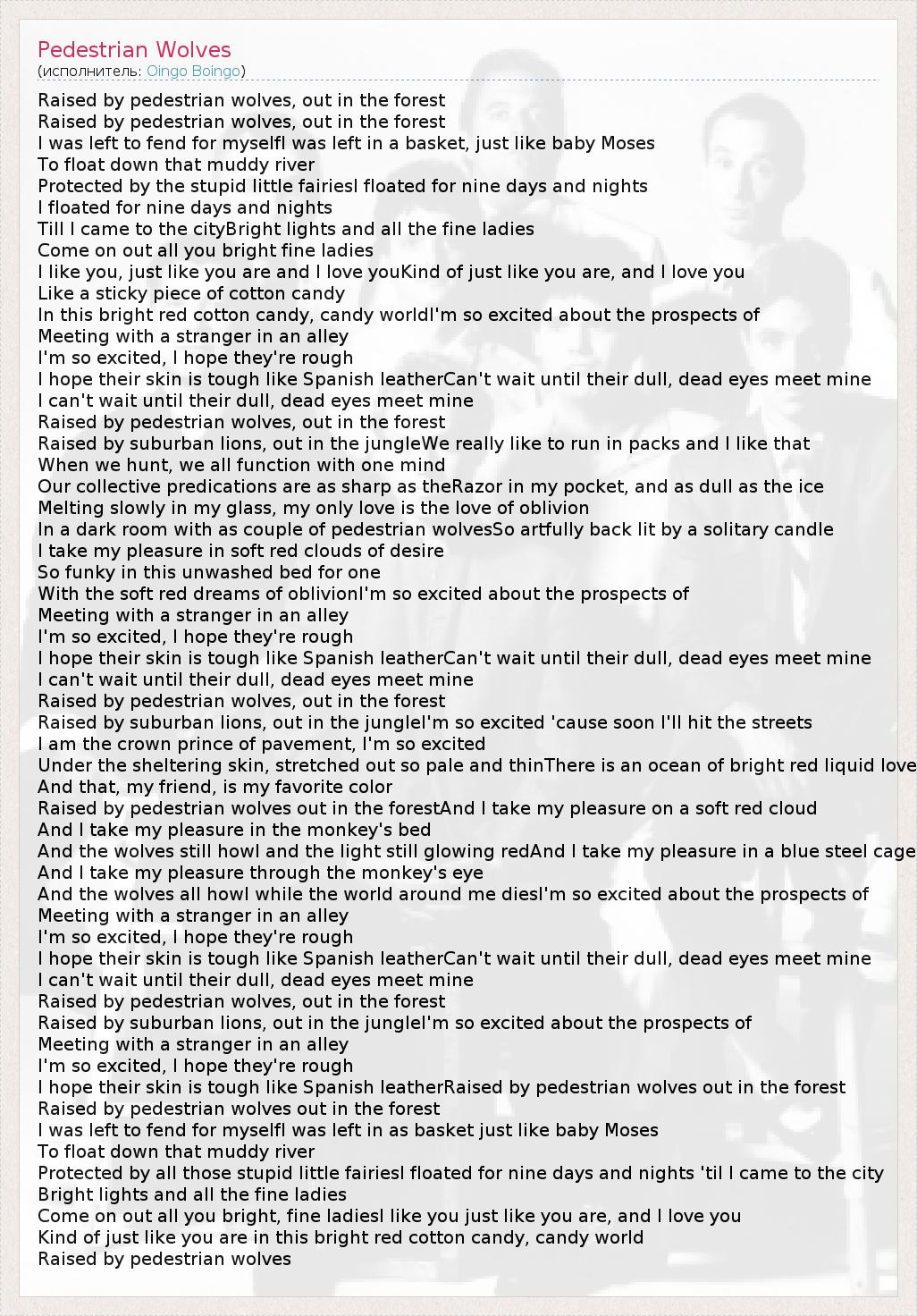 А как ты думаешь, о чем песня "Pedestrian Wolves" ?