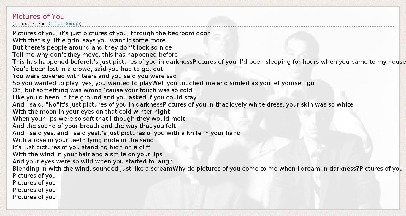 А как ты думаешь, о чем песня "Pictures of You" ?