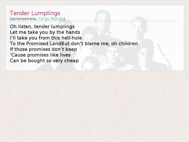 А как ты думаешь, о чем песня "Tender Lumplings" ?