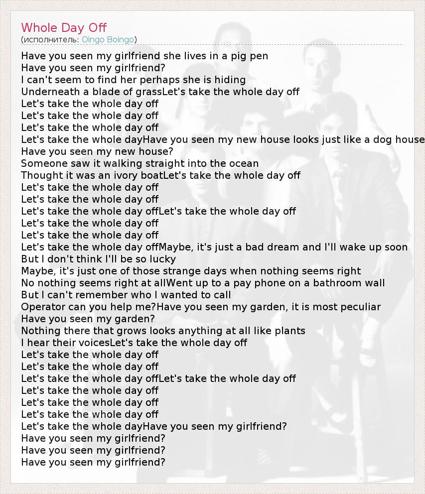 А как ты думаешь, о чем песня "Whole Day Off" ?