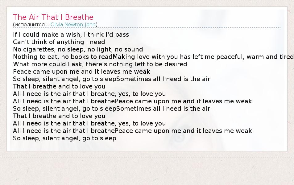 А как ты думаешь, о чем песня "The Air That I Breathe" ?