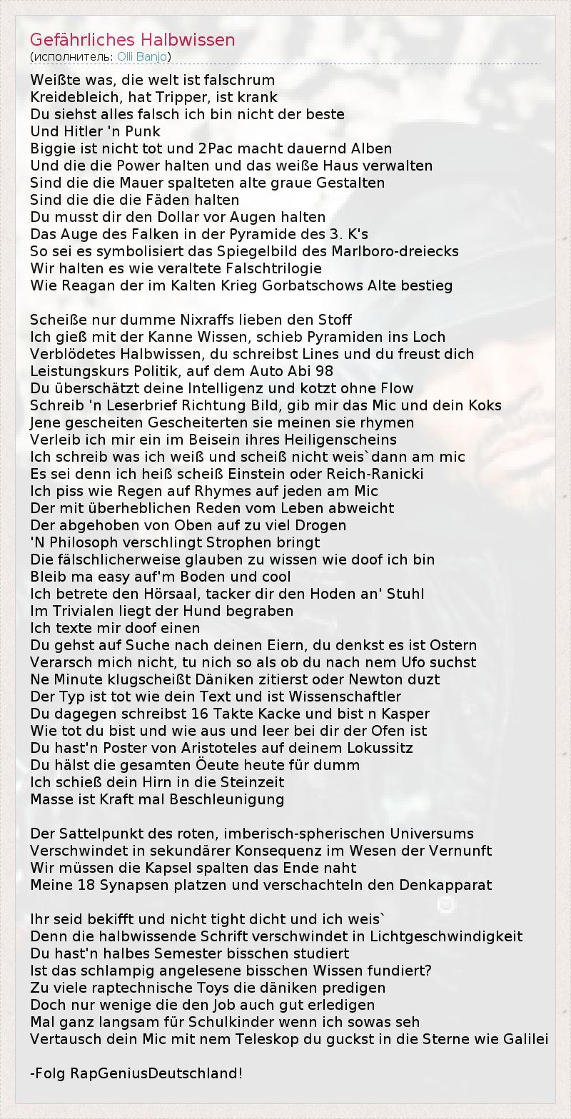 А как ты думаешь, о чем песня "Gefährliches Halbwissen" ?