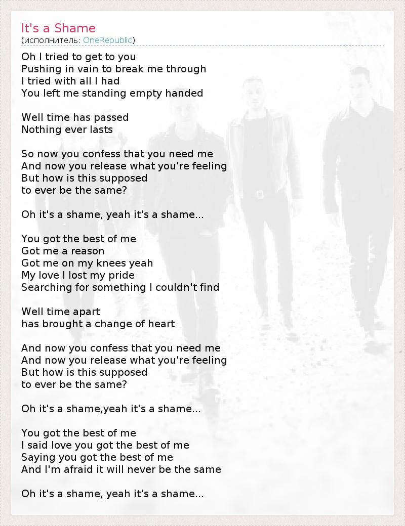 А как ты думаешь, о чем песня "It's a Shame" ?