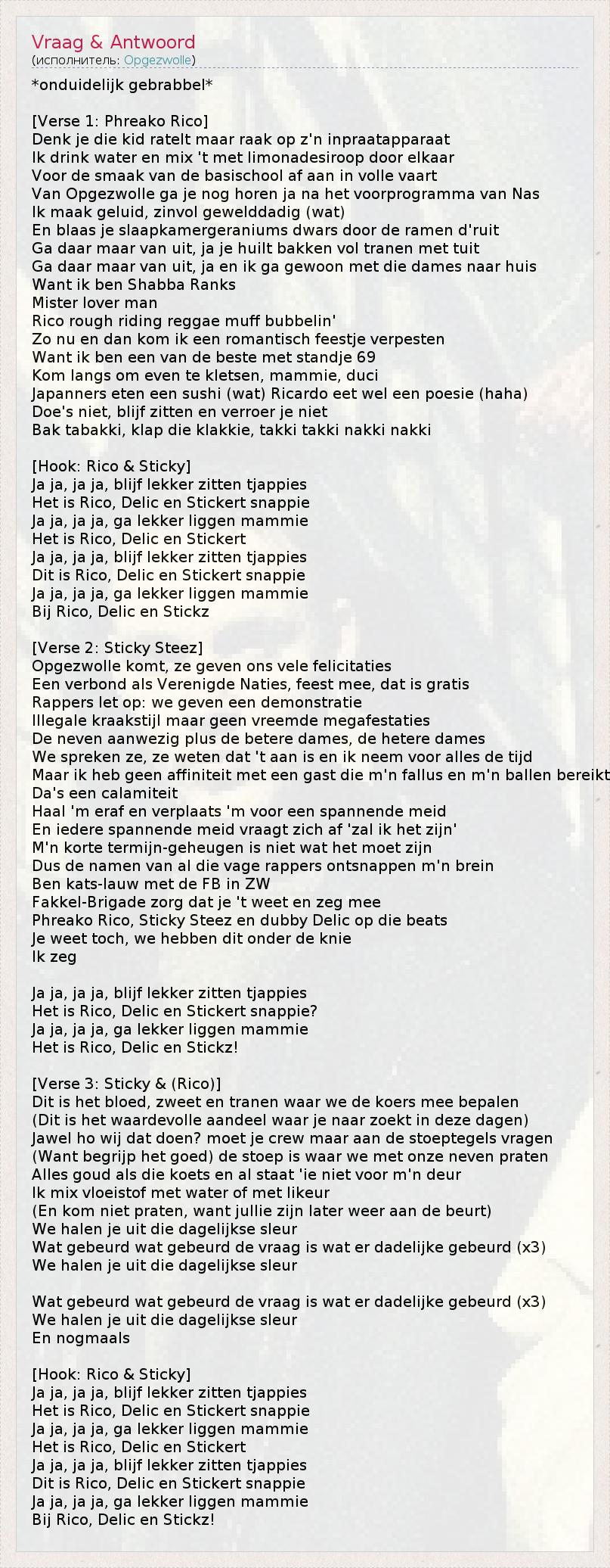 А как ты думаешь, о чем песня "Vraag & Antwoord" ?