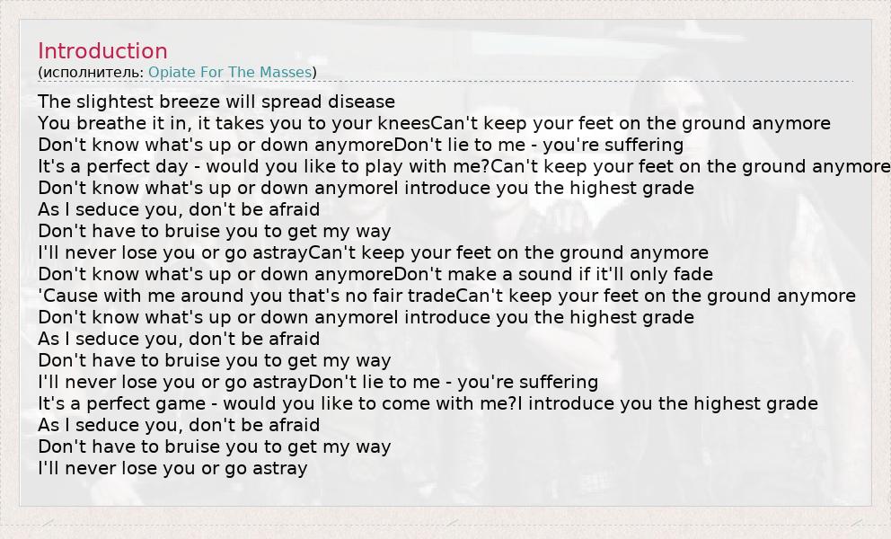 А как ты думаешь, о чем песня "Introduction" ?