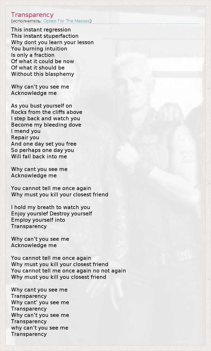 Это интересно:Opiate for the Masses - американская пост-хардкор группа из Аризоны. Была создана в Финиксе в 1999 Роном Андервудом, Элиасом Маллином, Дастином Лайоном и Джимом Кауфманом. Название группы пришло из работ Карла Маркса, писавшего, что религия - ничто иное, как "опиум для народа".Две композиции группы, а именно "Dead underground" и "Step up", были представлены в составе OST к фильмам "Пила 2,3".... продолжение