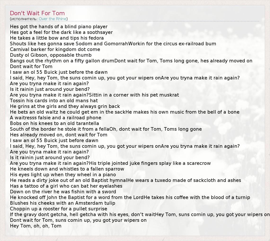 А как ты думаешь, о чем песня "Don't Wait For Tom" ?