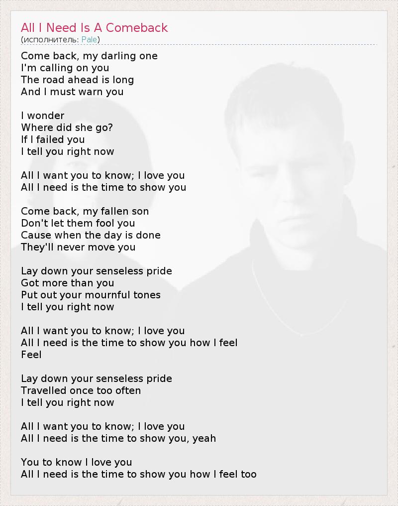 А как ты думаешь, о чем песня "All I Need Is A Comeback" ?