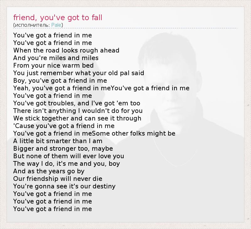 ГлавнаяИсполнителиPalefriend, you've got to fall