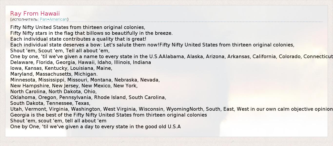 А как ты думаешь, о чем песня "Ray From Hawaii" ?