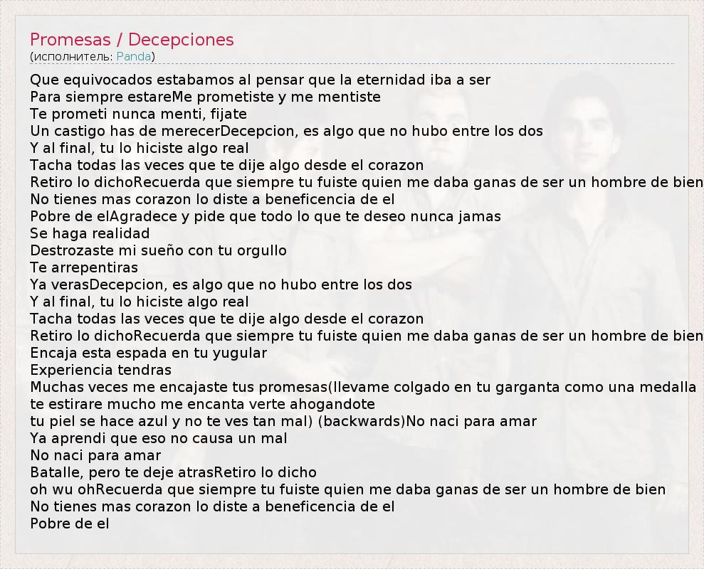 А как ты думаешь, о чем песня "Promesas / Decepciones" ?