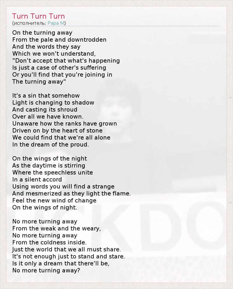 А как ты думаешь, о чем песня "Turn Turn Turn" ?