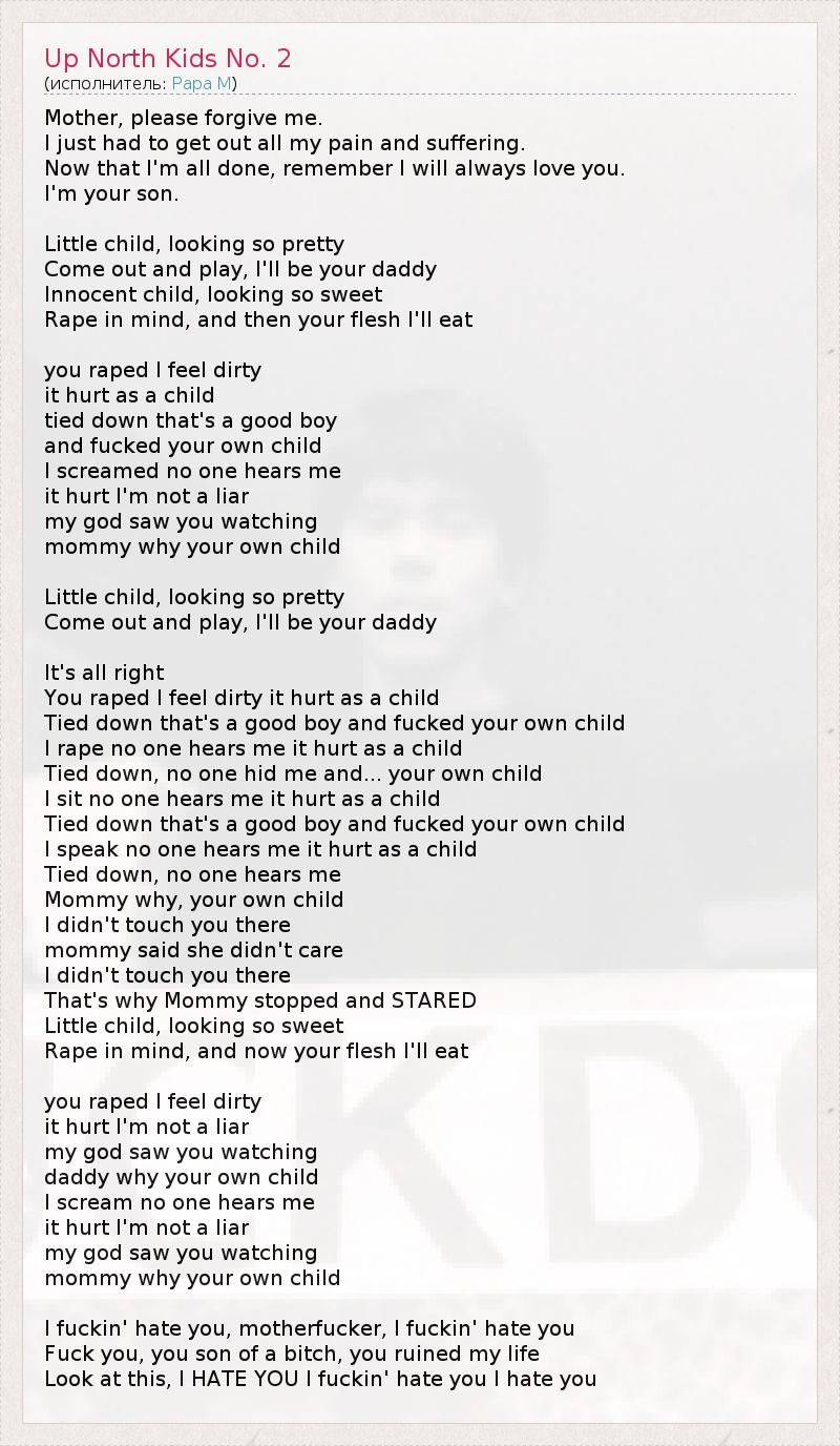 Ты изнасиловал меня, я чувствую себя грязным. Как же больно ребенку!