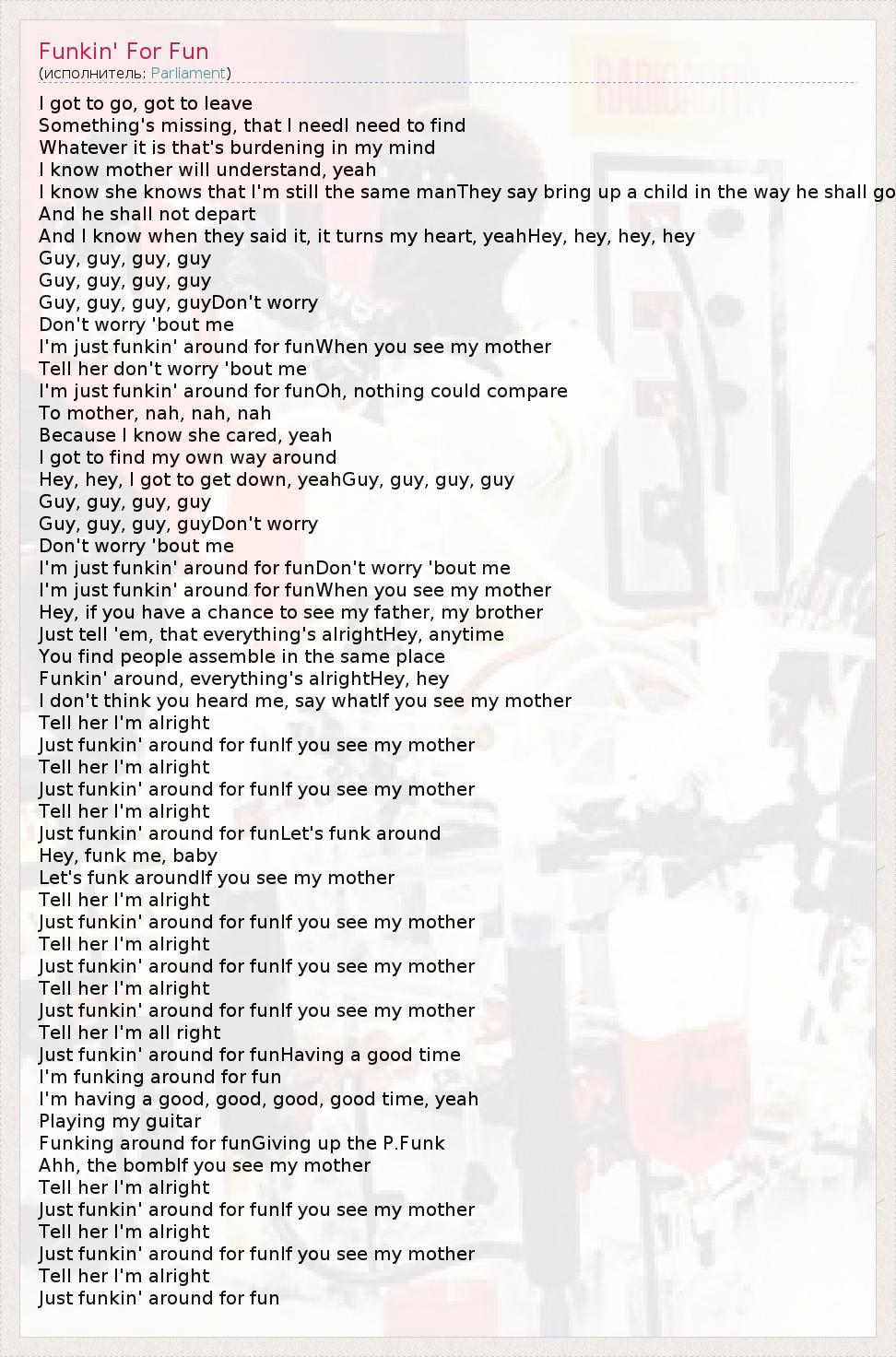 А как ты думаешь, о чем песня "Funkin' For Fun" ?