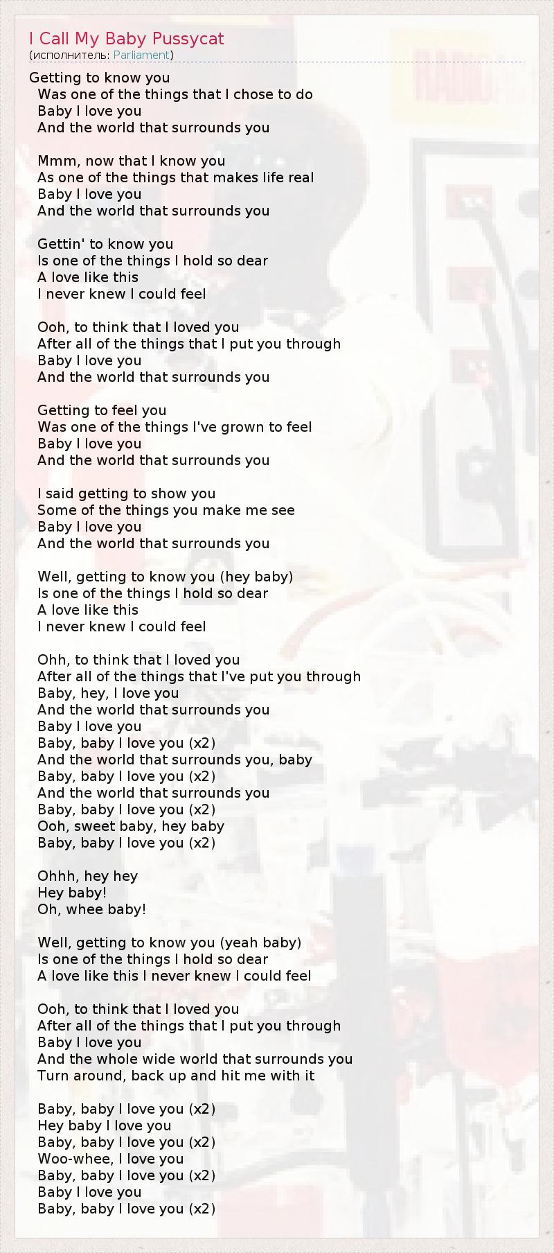 А как ты думаешь, о чем песня "I Call My Baby Pussycat" ?