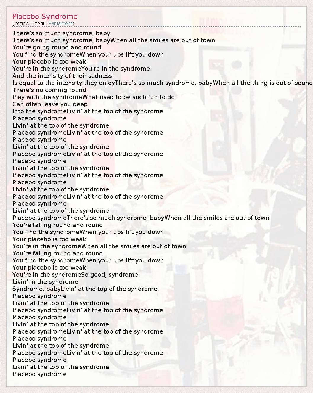 Placebo syndromeThere's so much syndrome, babyWhen all the smiles are out of town