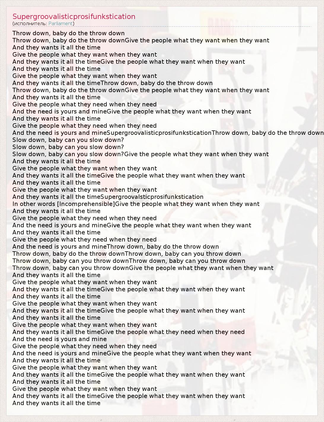 And the need is yours and mineSupergroovalisticprosifunksticationThrow down, baby do the throw down