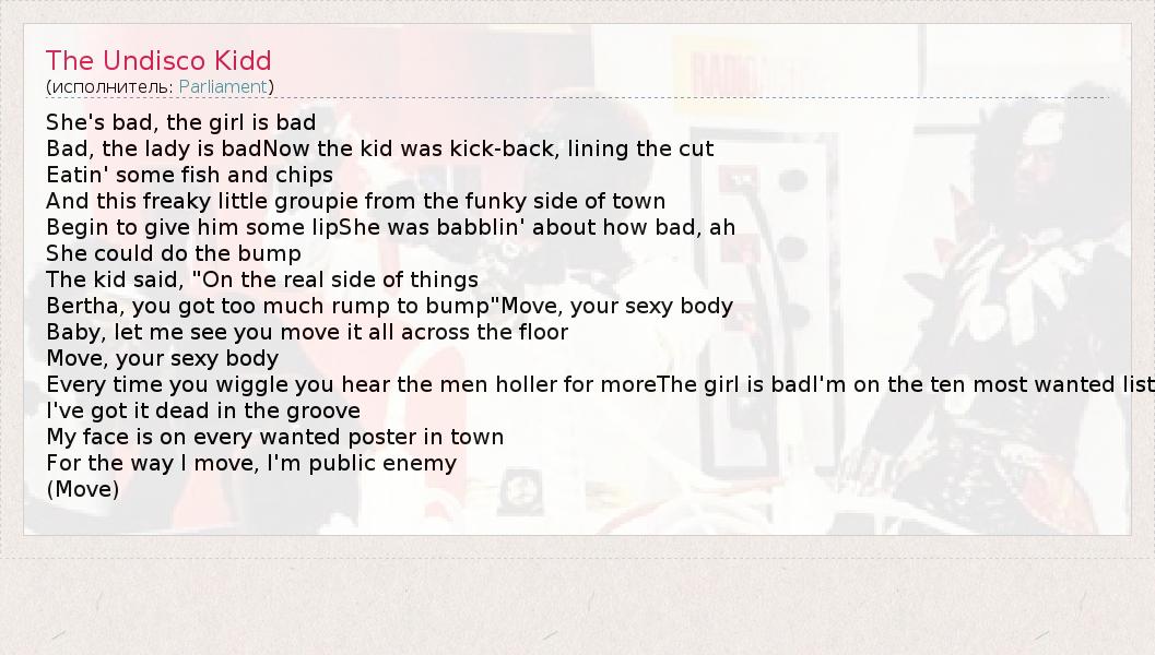 А как ты думаешь, о чем песня "The Undisco Kidd" ?