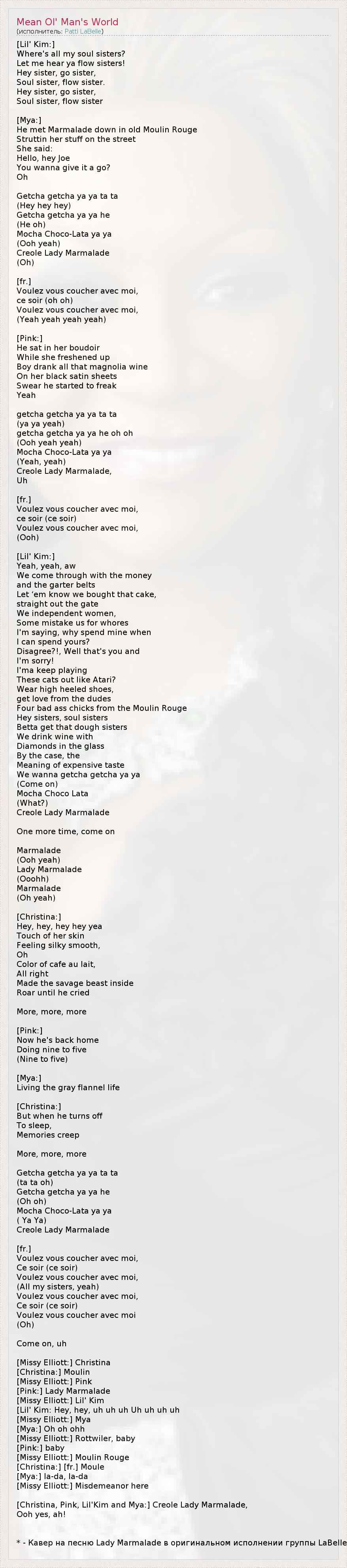 [Christina, Pink, Lil’ Kim и Mya:] Креолка Леди Мармелад