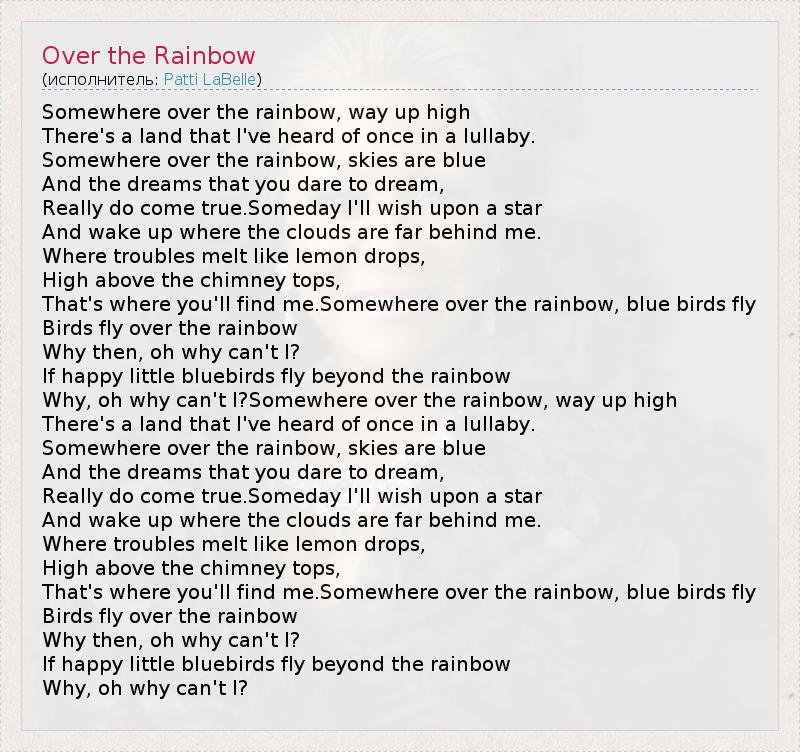 Why, oh why can't I?Somewhere over the rainbow, way up high