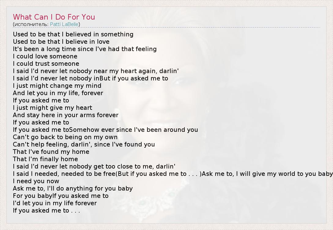 А как ты думаешь, о чем песня "What Can I Do For You" ?