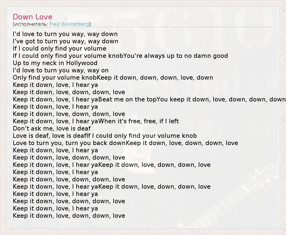 А как ты думаешь, о чем песня "Down Love" ?